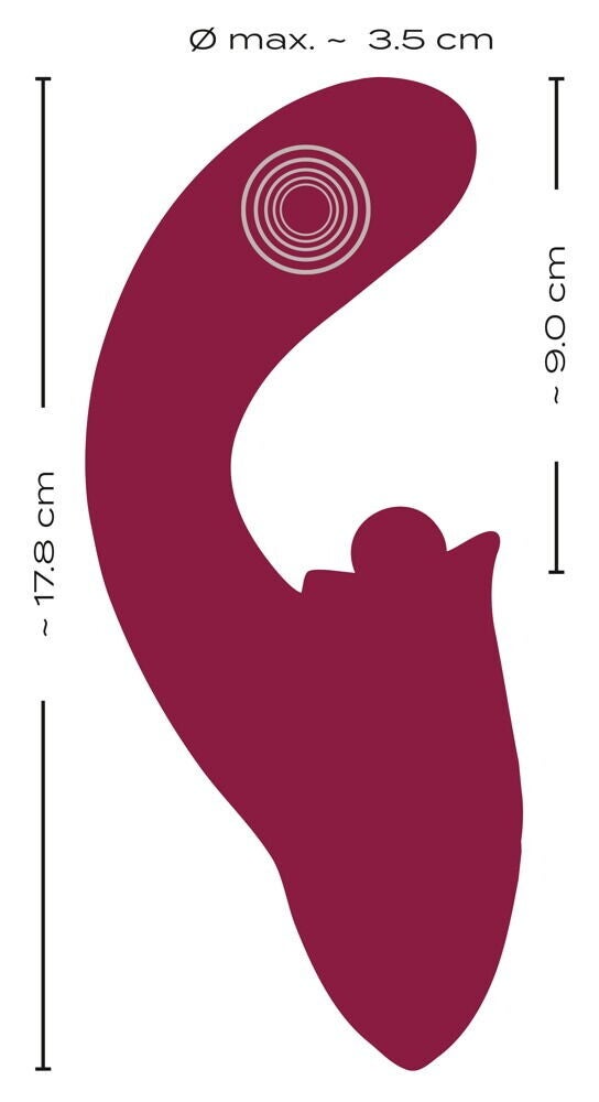 2 leise leistungsstarke Motoren sorgen für zuverlässige Power bei der Rundum-Stimulation. Die Vibrationen in der Spitze sind mit der pochenden Klopf-Funktion (Thumping) im Klitoris-Kugelstimulator kombiniert und in 10 Modi steuerbar. Dazu lässt sich die Stoßfunktion im Schaft in 5 Geschwindigkeiten separat einstellen. Alles bequem per Knopfdruck direkt am Toy.