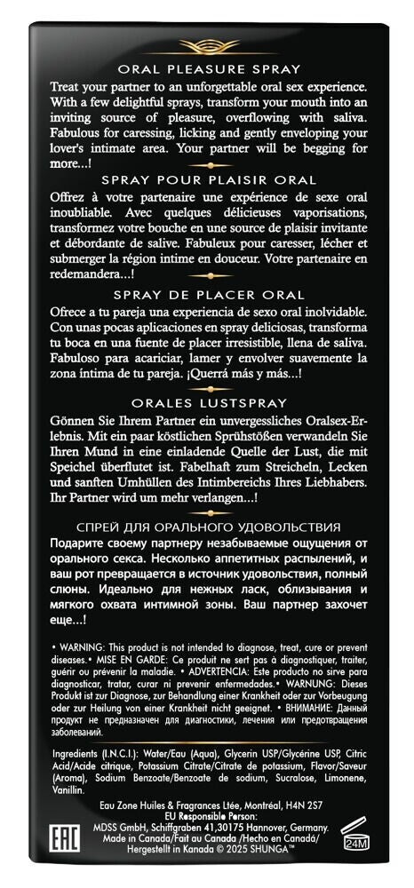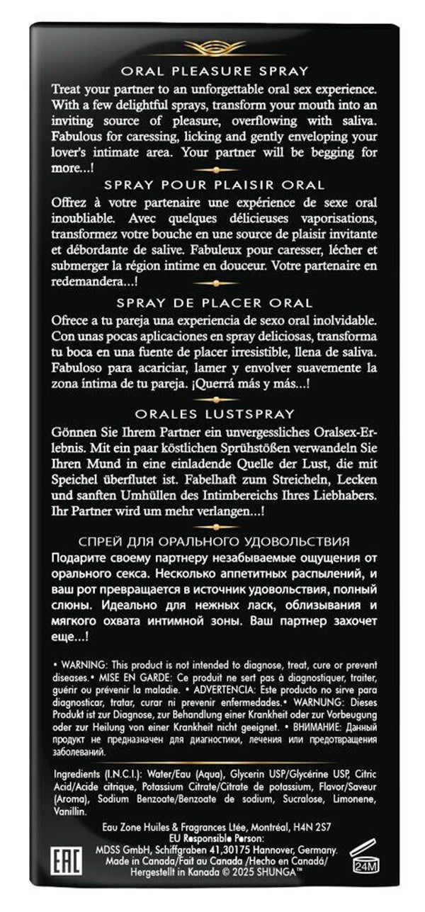 Das Mundspray Waves of Pleasure von Shunga verwandelt Mund und Rachen in eine Quelle der Lust für unvergesslichen Oralsex. Exotische Geschmäcker laden zu verspielter Zungenkunst und zum intimen Küssen und tiefen Vernaschen ein. Einfach vor dem Oralsex in den Mund/Rachen sprühen.